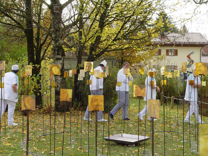 Die Köche vom St.Anna-Haus inspizieren die Ausstellung