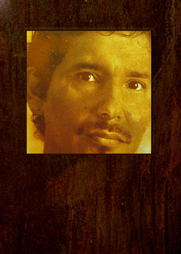 14x14 cm silbergelbes Glasportrait in Eisenrahmen